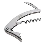 This handsome, hand-polished stainless-steel waiter's corkscrew is a compact, all-in-one tool for home entertaining that fits easily into a pocket. Folded, it measures a little more than 4 inches long, but it's plenty big and sturdy enough to pop wine corks and de-cap bottles. Unlike most wing-style corkscrews, this one also has a folding foil-cutter blade for prepping the bottle before opening. On the flip side, getting the hang of the lever action for pulling corks does take a little practice, but the result has its own rewards. Salute! --Dale Steinke