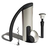 A great gift for wine lovers, this Pinzon gift set includes a wine opener, foil cutter, and stopper. The powerful cork puller effortlessly extracts the cork from any wine bottle with simple lever action. Simply lift the rubber-finished lever up, clamp on the bottle's neck with the Penguin's side grips, push down the lever to drive the corkscrew into the cork, and raise the lever to pull the cork out cleanly. Releasing the cork from the screw involves the same action. For strength and longevity, the opener is constructed of stainless steel with black plastic accents. Accompanying the cork puller is a foil cutter that strips away the foil covering a cork, and an extra screw that can be installed with a screwdriver. The opener also comes with a stopper that tightly seals your leftover wine in the bottle. All pieces in this set should be hand washed and are imported.