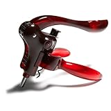A useful tool for anyone who loves to entertain, this easy-to-use wine opener by Pinzon allows for gracefully opening bottle after bottle of wine to share with family and friends. Beautifully crafted from transparent red plastic, the durably constructed unit features a steel gear mechanism and comfortable handles that effortlessly clamp onto the neck of any size bottle. Once properly positioned, all it takes is a simple push of the lever--the unit's tough, Teflon-coated worm gets driven into the cork and then, with a simple pull in the opposite direction, the cork smoothly pulls out of the bottle. No more embarrassing struggles or need to duck into the kitchen during a dinner party or evening soiree. The powerful device not only opens bottles in a mere three seconds, it also offers long-lasting performance from one year to the next (opens 1,000 bottles in its lifespan). For added convenience, the same lever action releases the cork in one swift motion. Accessories include a squeeze-and-twist foil cutter and a Teflon-coated replacement worm. The wine opener measures approximately 7-1/2 by 2-1/4 by 5-1/4 inches and should be hand washed for best results.