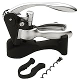 The next best thing to an in-house sommelier, this professional-quality wine opener offers the same impressive performance and stylish design as corkscrews that cost far more. Made from durable, nickel-plated, zinc alloy with easy-grip, ergonomic handles, it uses metal gears to extract corks in seconds. The entire process requires minimal effort, and best of all, there are never bits of mangled cork floating around in the bottle afterwards. This MIU France wine opener comes with an extra corkscrew, an attractive presentation stand, and a foil cutter to prepare bottles for opening. This product is dishwasher-safe, and has a lifetime warranty.